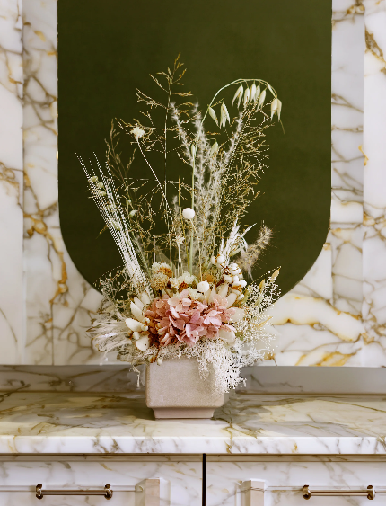 With neutral hues paired with rich grassy texture, this dried and preserved arrangement makes an effortlessly stylish touch to any spaces. A nod to nature's elegance in every strand. Perfect for the modern minimalist and maximalist.