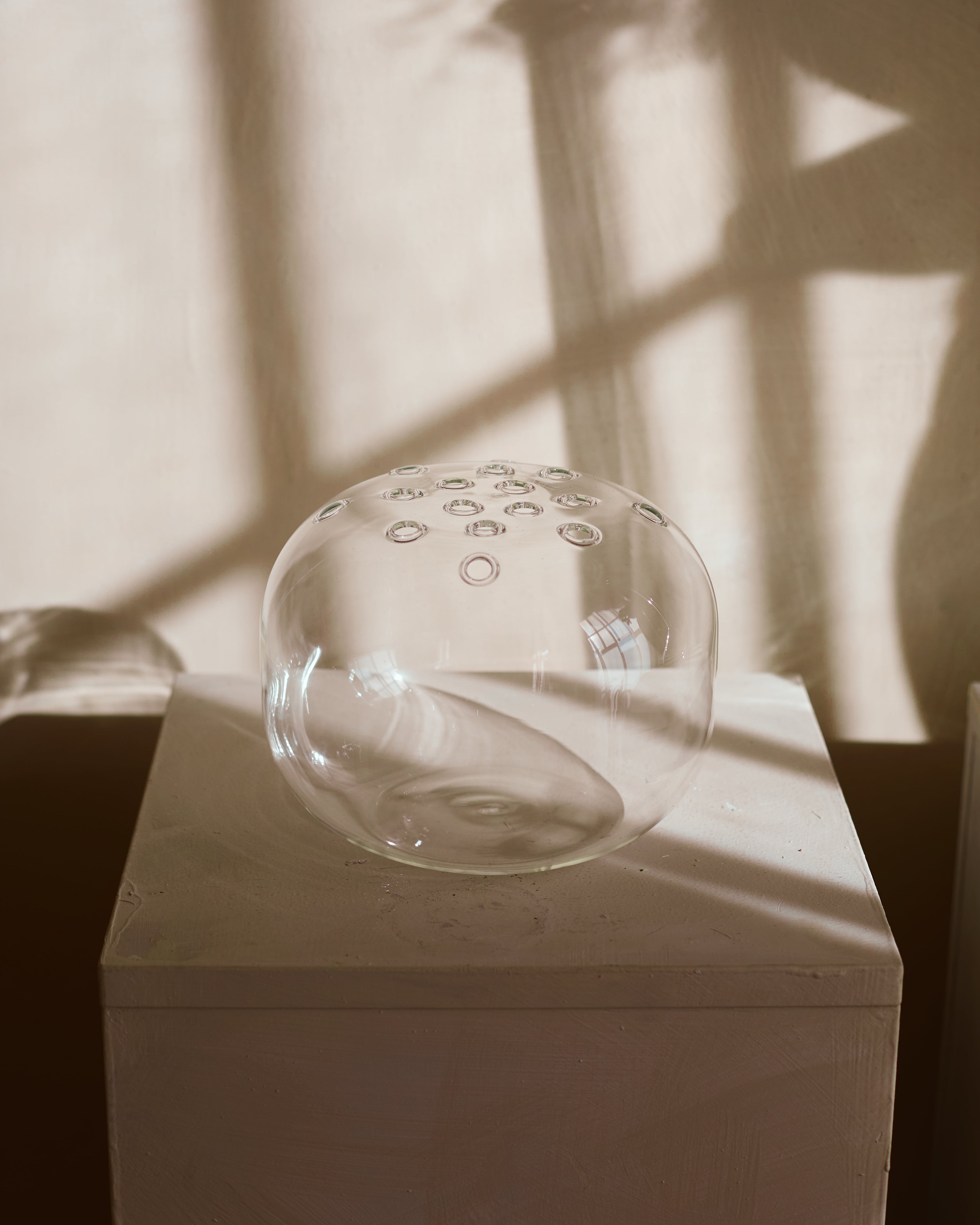 Elevate your interior with this precious standalone glass frog, a must-have for those who appreciate sophisticated flower arrangements. This versatile piece seamlessly integrates into your design aesthetic, whether used independently or paired with a carefully chosen open vessel. Enhance the ambiance by filling its openings with water, creating a minimalist showcase for your favorite blooms, or keep it on your kitchen counter as a fresh herb haven. Even when not in use, let its sculptural elegance captivate and elevate your space.