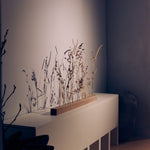 A linear field of preserved seed botanicals set into a solid cherry wood block. Extending across four feet, the work explores rhythm, spacing, and accumulation at an architectural scale.