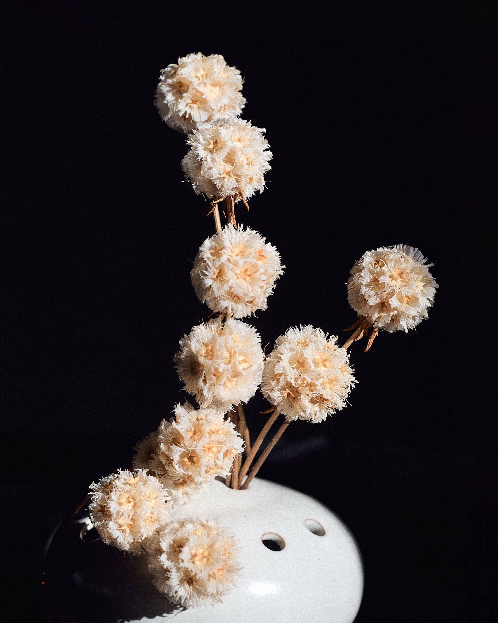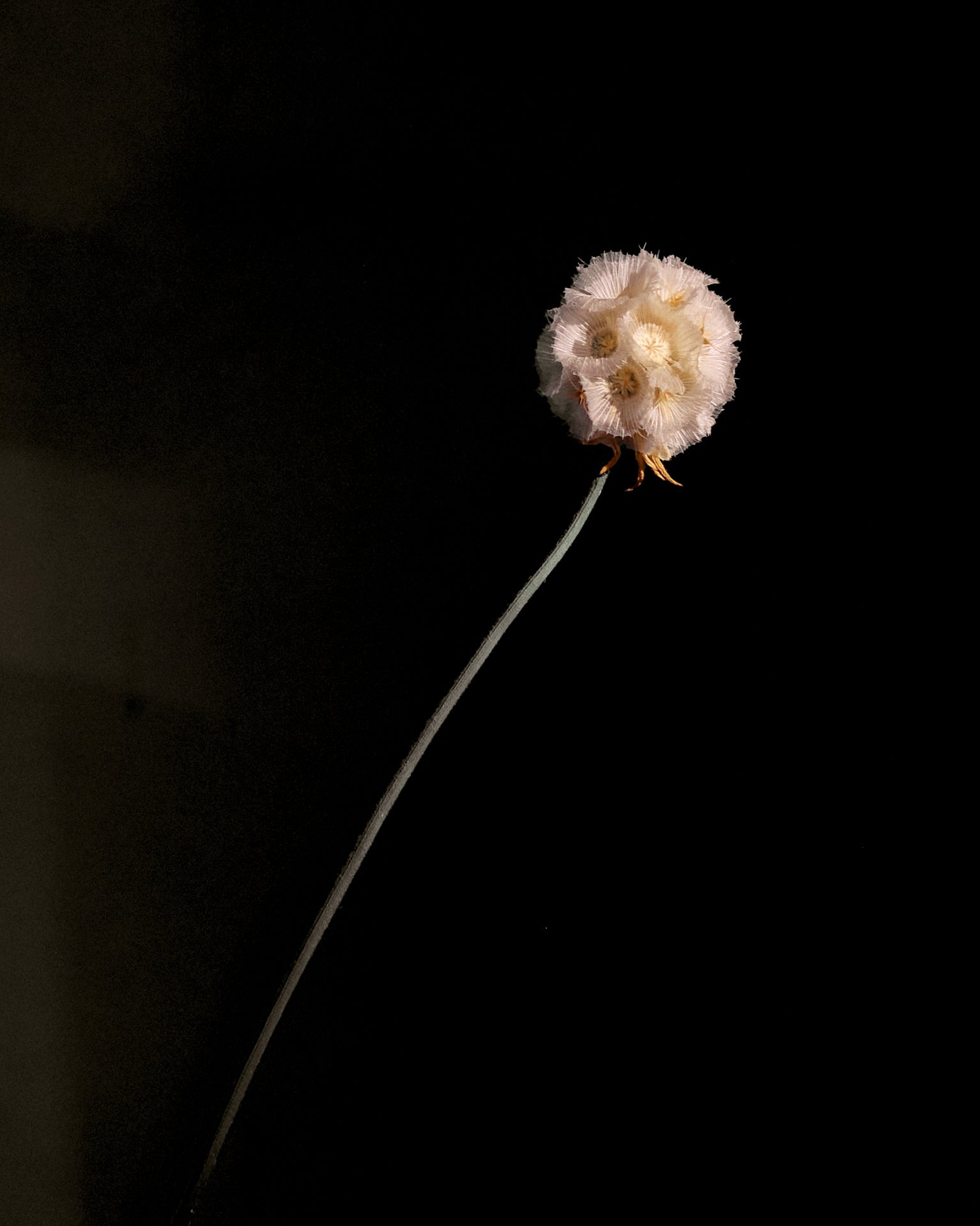 Preserved in this state, scabiosa marks a moment after bloom, when structure remains, but color has faded.