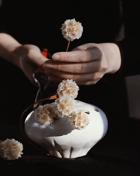 In floriography, scabiosa is associated with remembrance and the passage of time. Its seed head remains long after flowering, holding the trace of what has already occurred.